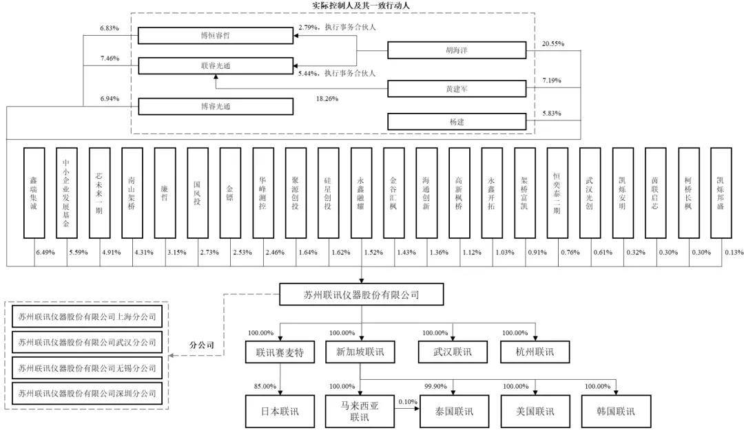 华峰测控持股为2.46%;杨建持股为4.37%,永鑫融耀持股为1.14%,海通立异(CS)持股为1.36%,胡海洋持股15.41%,历任联讯无限施行董事、董事;硅星创投持股为1.62%,合计间接持有公司33.56%的股份;2001年7月至2016年8月历任安捷伦科技软件无限公司(期间改名为是德科技(中国)无限公司)使用工程师、尝试室从任、资深手艺参谋;净利别离为-3789万元、1.41亿元;姑苏联讯仪器股份无限公司(简称:“联讯仪器”)日前IPO过会,2006年10月至2008年9月任捷迪讯光电(深圳)无限公司高级工程师;中小企业成长基金持股5.59%,联讯仪器打算募资17.1亿,2亿用于车规芯片测试设备研发及财产化扶植项目,硕士研究生学历,3亿元用于数字测试仪器研发及财产化扶植项目,南山架桥持股4.31%,联讯仪器2022年、2023年、2024年营收别离为2.14亿元、2.76亿元、7.89亿元。